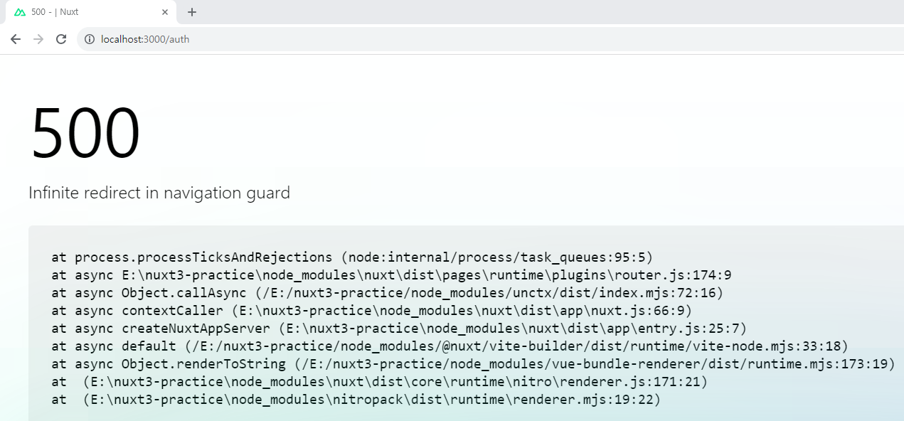 글로벌로 만든 미들웨어에서 navigateTo를 이용해 리다이렉트를 할 경우, isLoggedIn이 계속 false이기 때문에 무한 리다이렉트에 빠져 주의해야 한다.