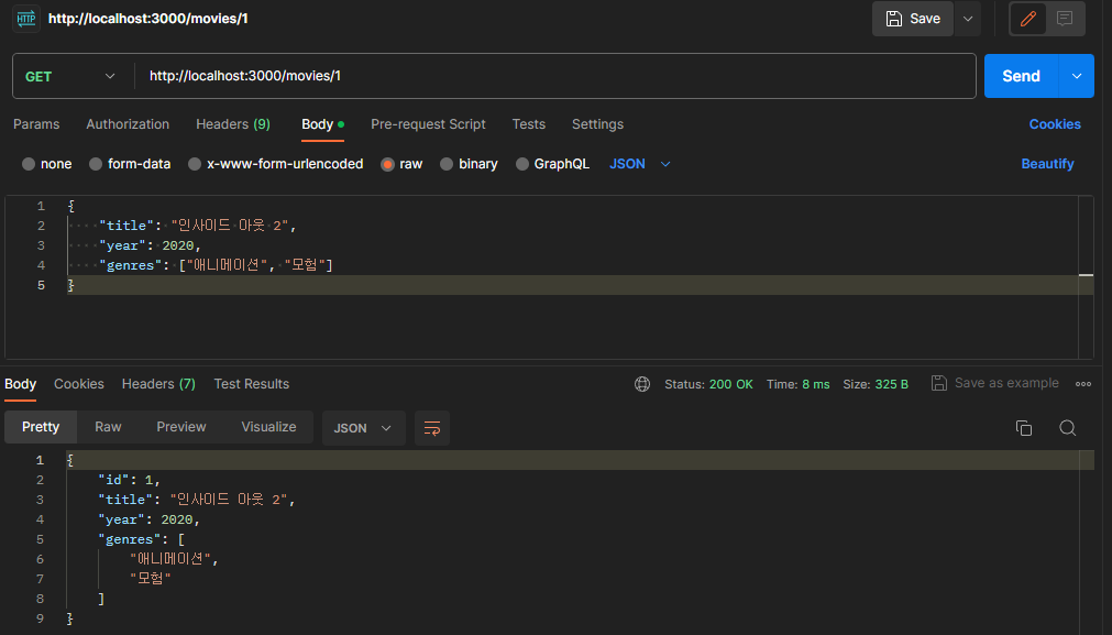 /movies/:id 경로의 GET 요청에 대한 응답을 반환한다.
