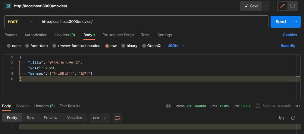 /movies 경로의 POST 요청에 대한 응답을 반환한다.