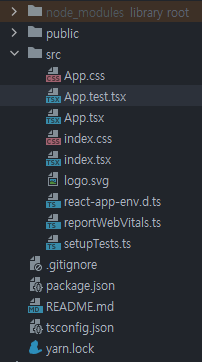 src 폴더에서 App.css, App.tsx, index.css, index.tsx 파일만 남기고 전부 삭제한다.
