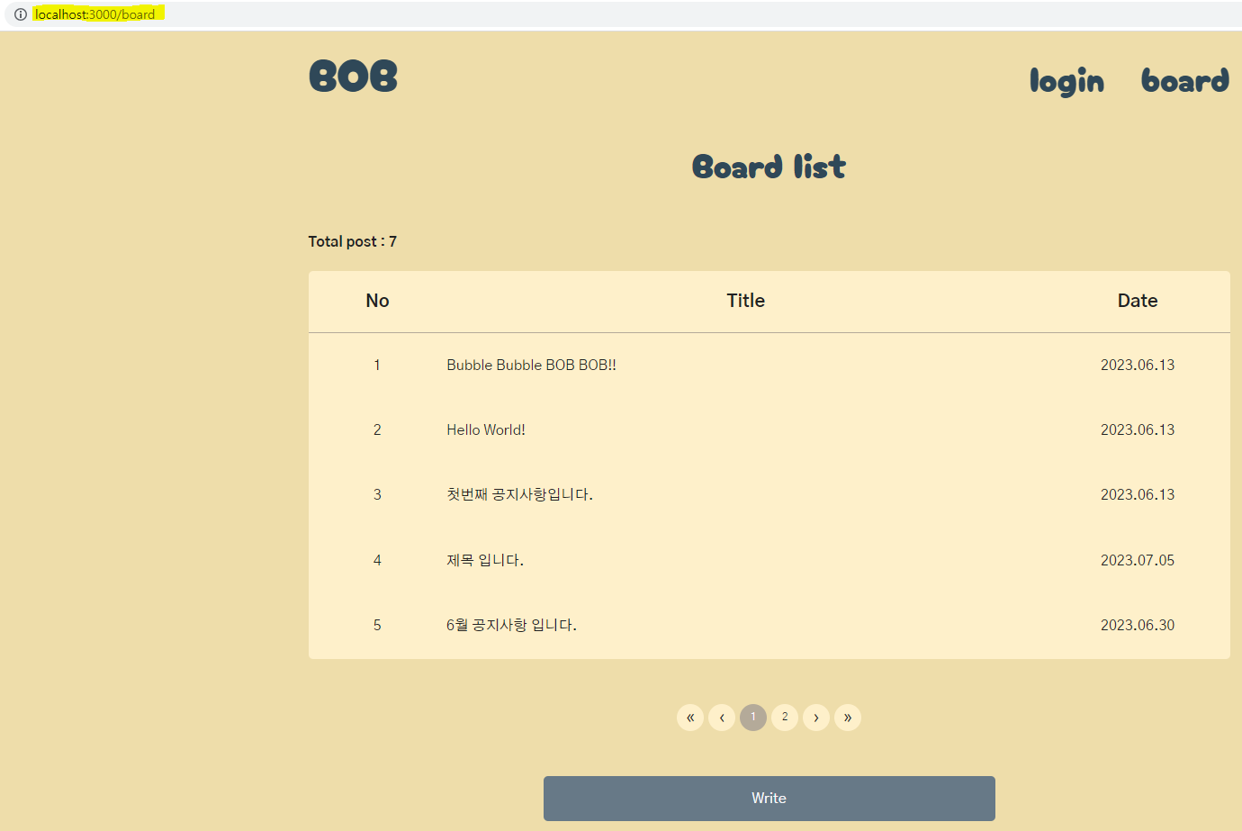 게시판 목록, 상세, 생성, 수정, 총 4가지 페이지를 만든다.