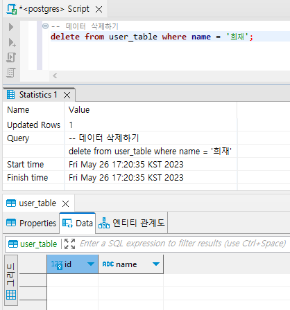 delete from user_table where name = '희재';