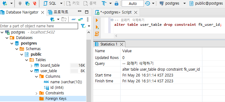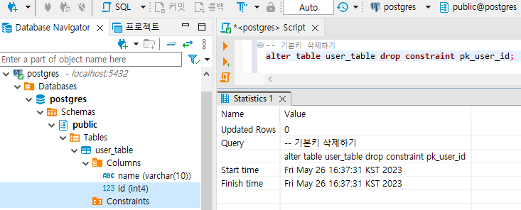 | [PostgreSQL] 테이블 생성, 수정, 삭제하기(create, alter, drop) (0) | 2023.05.26 |