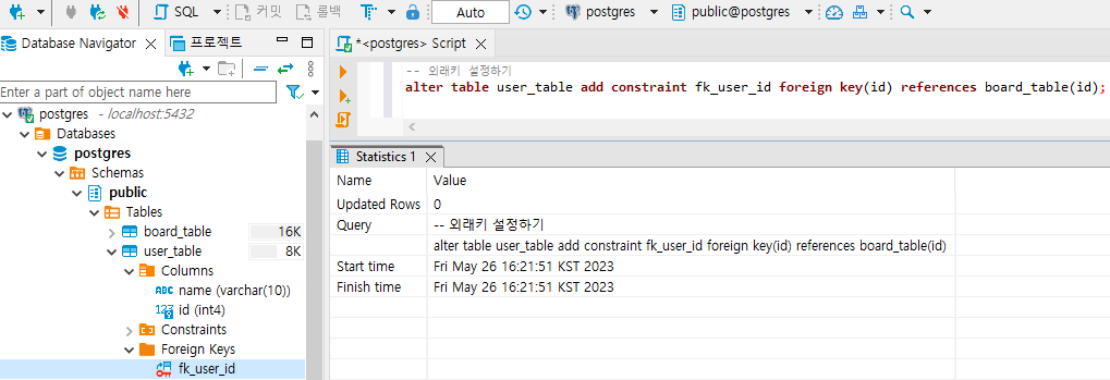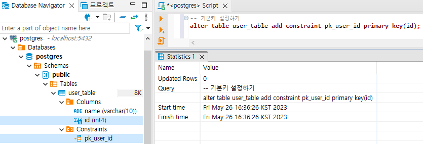 | [PostgreSQL] 테이블 기본키, 외래키 설정하기(primary key, foreign key) (0) | 2023.05.26 |