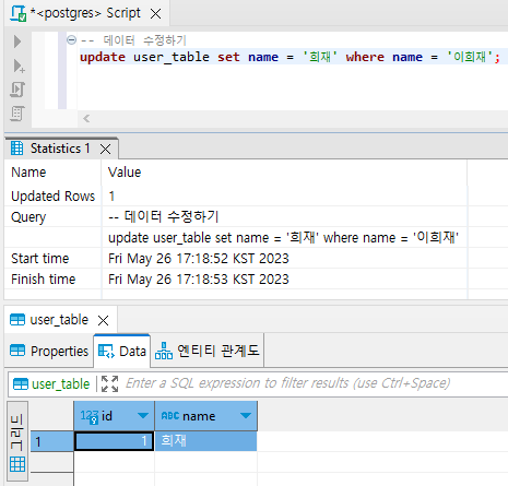 update user_table set name = '희재' where name = '이희재';