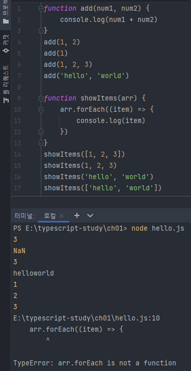 합집합 타입은 '또는(or)'의 의미인 '|' 기호로 다양한 타입을 연결해서 만든 타입이다.