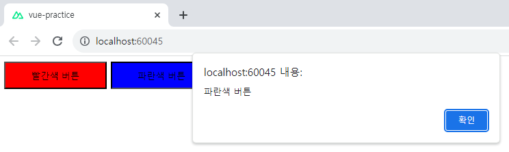 - <script> 태그 안 methods 부분에 클릭 이벤트를 작성한다. (redAlert(), blueAlert())