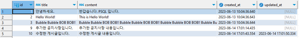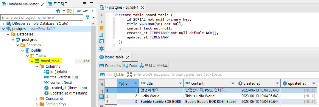 참고, 로컬에 아래 사진처럼 PSQL 데이터베이스를 만들었다.